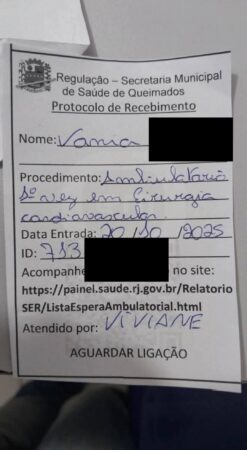 Aguardando desde março uma cirurgia cardíaca. Entrei na fila com número 318. Fui várias vezes no setor de regulação e sempre me falavam: quando zerar a sua fila a senhora vem aqui. A fila não apareceu para mim nesta segunda-feira, fui lá e me informaram que minha cirurgia havia sido cancelada porque não foram anexados os exames cardiológicos pedidos pelo REUNI-RJ no dia 20/08.